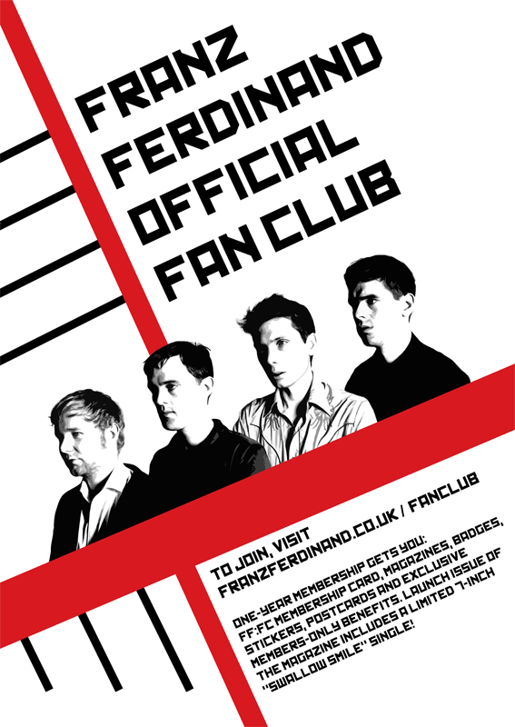 In 2006, Mark Hathaway (who ran the first fan-operated Franz Ferdinand website) was contacted by the band to start up an old-school fan club, complete with magazines, exclusives, a membership card, etc. Mark needed someone to handle the graphic design, and asked me to do it. I agreed (obviously!) and the two of us basically ran the fan club together until he passed away in 2010. I took point on issue #6, and then designed the cover for issue #7. The fan club sadly disbanded after that.